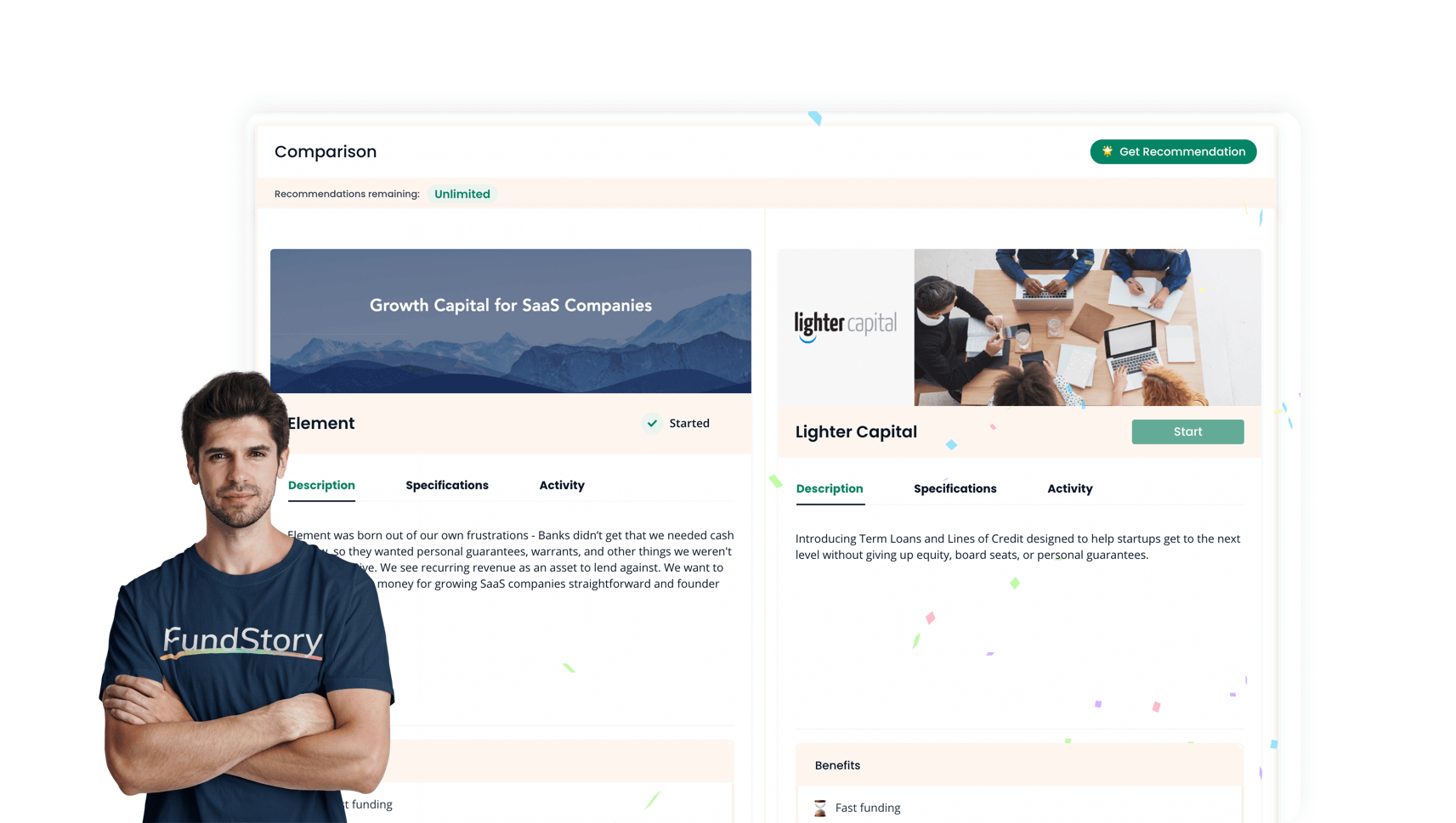 FundStory provides you with easy online integration services to access financing options from third party lenders. FundStory is not a loan provider or other funding provider and does not provide actual loans. Approval of an actual offer from a third-party lender is subject to a separate assessment process by the third-party lender and the advance is subject to the third-party lender's terms and conditions. Approval time may vary and is not guaranteed. FundStory is not acting as a lender or a broker ("Service Provider"). The information provided by you to FundStory is not an application for a loan nor is it used to pre-qualify you with any lender. Service Providers, in our matching engine, may have loan products available matching your business profile. FundStory does not guarantee the rates or terms offered. Platform integration does not obligate you to purchase a service or product from the providers, nor does it obligate a provider to offer to you any particular service about which you may have inquired. Available offers, rates and terms are subject to change daily without notice.